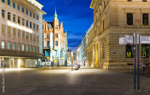 © FSEID, Fototapeta premium Blick in die Innenstadt von Leipzig, in die Petersstraße vom Wilhelm-Leuschner-Platz aus gesehen.