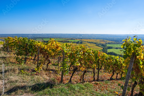 © fotografci, Fototapeta premium Blick ins Rheingau/Deutschland über einen herbstlich gefärbten Weinberg