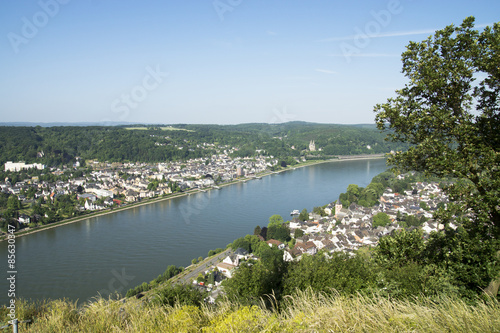 Fototapeta premium Blick vom Erpeler Ley auf Erpel und Remagen am Rhein, Deutschland