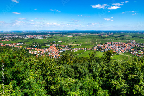 Fototapeta premium Blick vom Hambacher Schloss über die Deutsche Weinstrasse, Rheinland-Pfalz, Deutschland