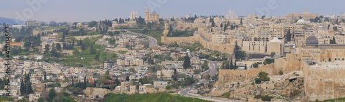 Obraz premium Blick vom Ölberg auf den Tempelberg, mit Al-Aqsa-Moschee und Dormitio Kirche