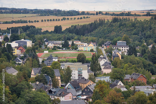 © Mark Lämmchen , Fototapeta premium Blick vom Turm der alten Burgruine auf dem Gelände des Regionalmuseum auf Bad Lobenstein, Thüringen, Deutschland