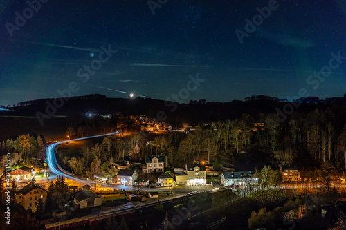 Fototapeta premium Blick vom Wolkensteiner Schloss im Mondschein