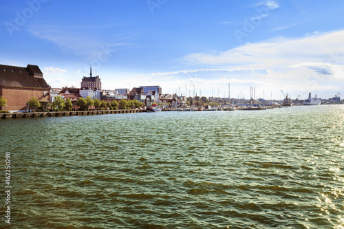 Obraz premium Blick von der Hafenmole über den Yachthafen auf Rostock