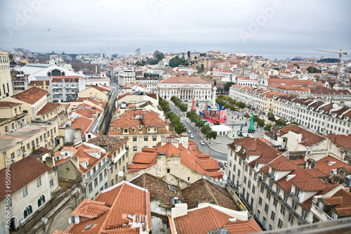 © travelview, Obraz premium Blick von Elevador de Santa Justa auf die Altstadt von Lissabon