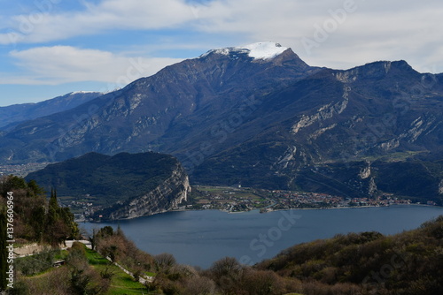Obraz premium Blick von Pregasina zum Gardasee und nach Torbole