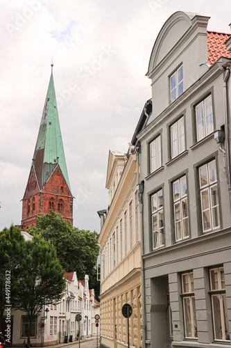 Obraz premium Blickwinkel in der Lübecker Altstadt; Aegidienstraße und St. Aegidien