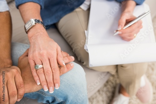 © WavebreakmediaMicro, Fototapeta premium Bliska widok terapeuty pocieszające pacjenta płci męskiej