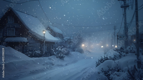 Fototapeta premium Blizzard Weather Heavy Snow Day World Covered by Snow Artistic Illustration...