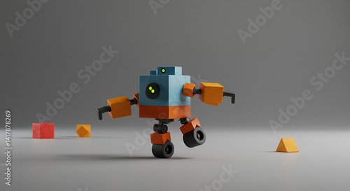 Obraz premium Block Form Robot Alone Balanced In Clean Frame