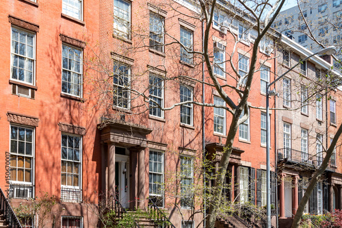 © deberarr, Fototapeta premium Block of historic brownstone buildings in Manhattan, New York City