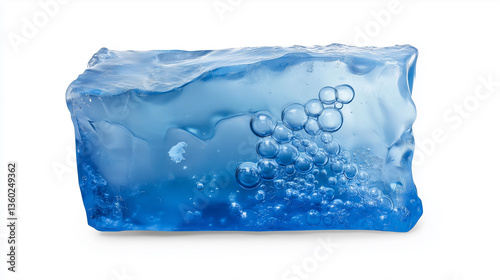 Fototapeta premium Block of Translucent Blue Ice with Bubbles Trapped Inside, Jagged and Natural...