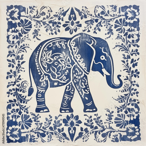 Fototapeta premium Block printed elephant