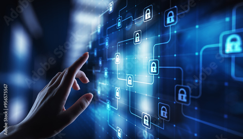 Naklejka premium Blockchain cryptography technology, fintech and internet concept on virtual screen.
