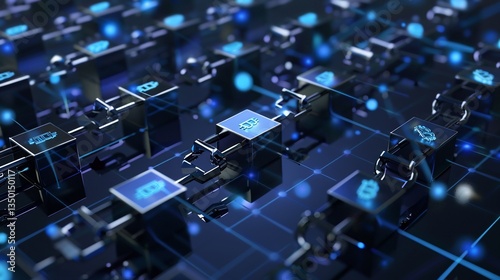 © Galih, Obraz premium Blockchain network digital cubes data security