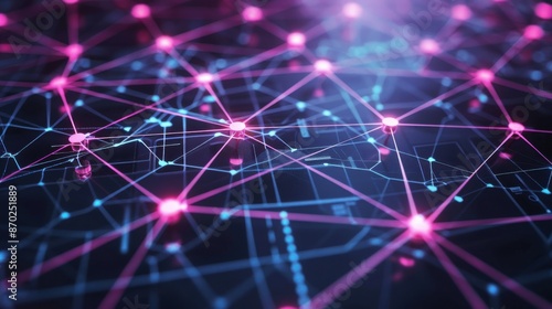 Fototapeta premium Blockchain network expansion with digital connections, technology tone, splitcomplementary color scheme, top view, highlighting network growth