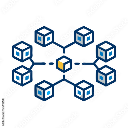 Fototapeta premium Blockchain network icon with connected cubes in linear style