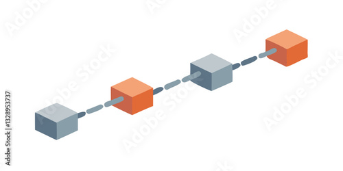 © Olga, Fototapeta premium Blockchain network with orange and grey cubes