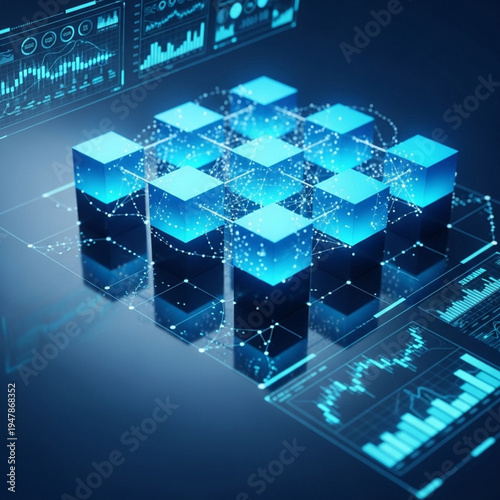 © Shihab, Obraz premium Blockchain Technology Concept with Digital Data Blocks and Network Connection Visualization