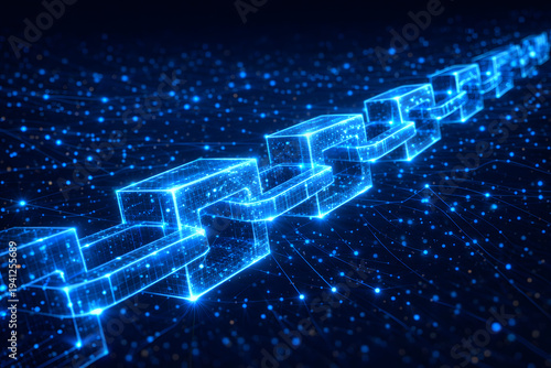 © 眞 松本, Obraz premium Blockchain Technology Network with Digital Chain Connections
