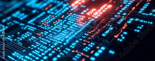 © Nongluk Tama, Obraz premium Blockchain technology, visualized in neon circuits, abstract financial data