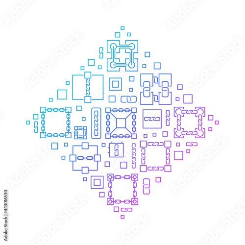 © tentacula, Obraz premium Blockchain vector outline colored rhombus shape banner