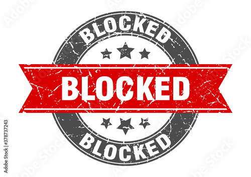 © Aquir, Obraz premium blocked round stamp with ribbon. label sign