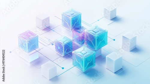 Obraz premium Blocks connected by blockchain technology, isolated on a white background;...