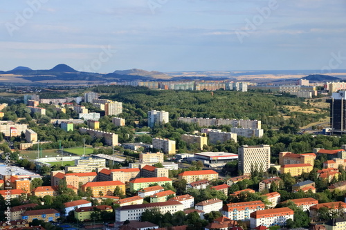 Fototapeta premium Blocks of flats in Most, Czech Rupublic post-communist architecture, view from Castle Hnevin