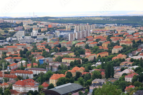 Fototapeta premium Blocks of flats in Most, Czech Rupublic post-communist architecture, view from Castle Hnevin
