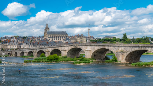 © Pascale Gueret, Fototapeta premium Blois in France, panorama of the city, the church and the river Loire