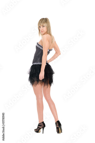 Fototapeta premium Blond girl in a short black skirt