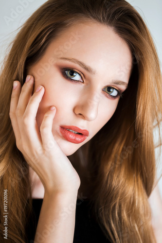 © liliyabatyrova, Obraz premium Blond girl with make up in the studio. cosmetics, makeup artist, beauty, hairstyle
