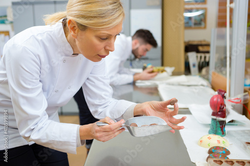 © auremar, Obraz premium blonde female worker in chocolate in store