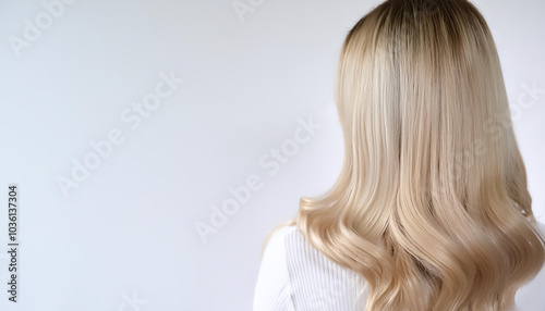 Obraz premium blonde hair in back side on side position provides copy space for text. background concept isolated white