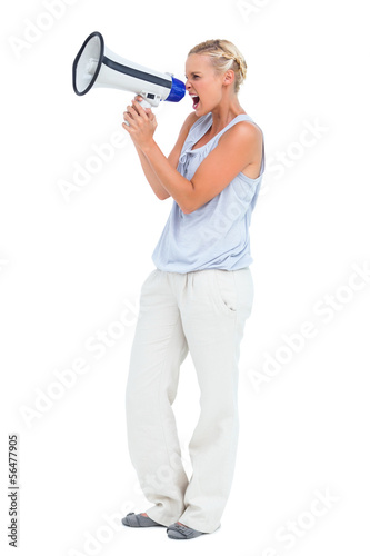 © WavebreakmediaMicro, Naklejka premium Blonde screaming through megaphone