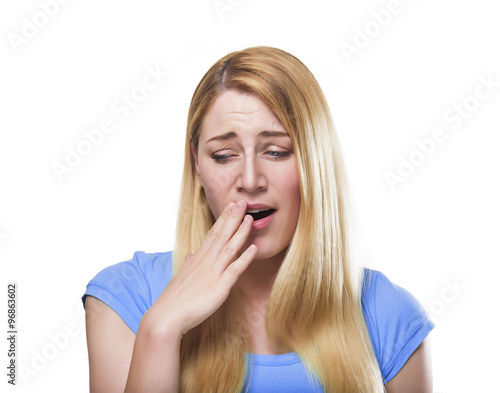 © Denis Rozhnovsky, Fototapeta premium Blonde surprised and disdainfully looking down.