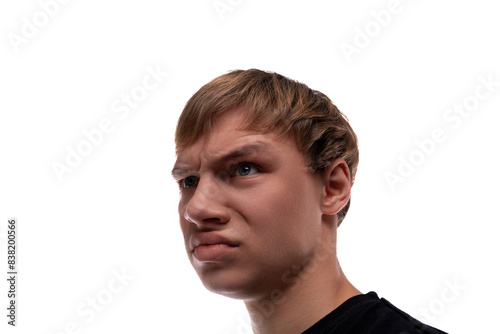 © Ivan Traimak, Obraz premium Blonde teenage boy is sad and angry