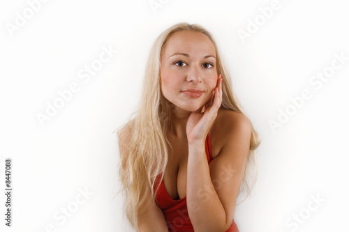 © Monika 3 Steps Ahead, Fototapeta premium blonde with hand on face