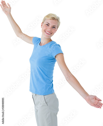 © vectorfusionart, Fototapeta premium Blonde woman standing arms outstretched