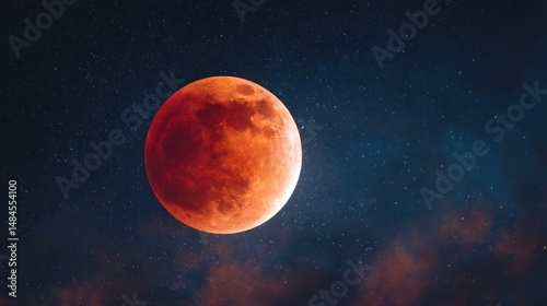 © Erisna Yolanda, Fototapeta premium Blood moon, a reddish lunar eclipse against a starry night sky