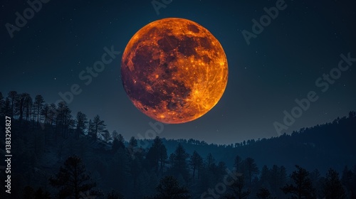 © Ajie stock, Fototapeta premium Blood Moon over Mountain Forest
