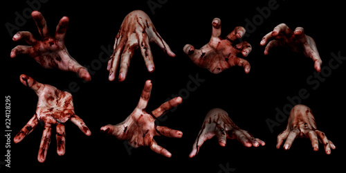 © fotokitas, Fototapeta premium Bloody hands isolated on black background