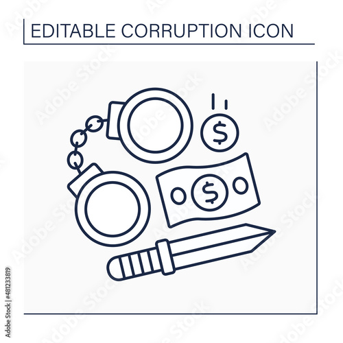 © Antstudio, Naklejka premium Bloody money line icon. Compensation for crime. Money obtained at cost of people lives. Corruption concept. Isolated vector illustration. Editable stroke