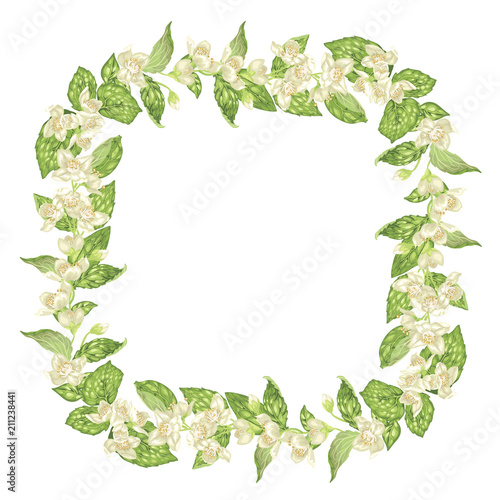 Naklejka premium Blooming and blossom frame square wreath with jasmine flowers