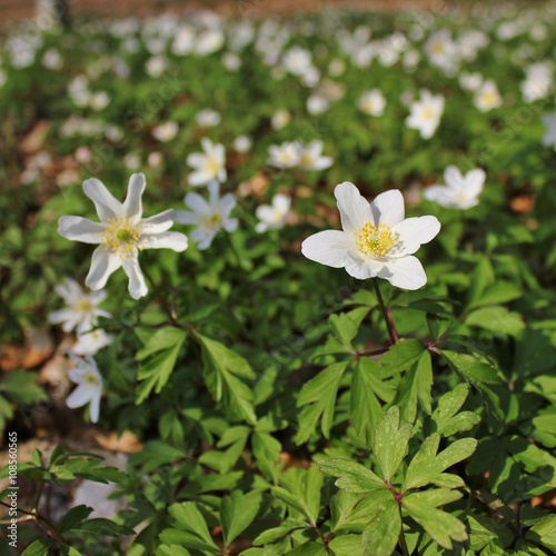 Obraz premium Blooming anemones covering the woodland floor at springtime