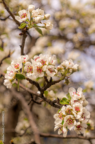 Obraz premium Blooming apple spring garden. Delicate flowers of the apple tree
