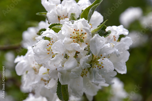 © Nadezhda, Obraz premium Blooming apple tree. After the rain. Macro
