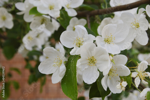 Obraz premium Blooming apple tree with delicate white flowers. Spring natural background.