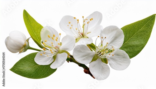 Obraz premium Blooming Branch With White Flowers And Green Leaves Floral Element Isolated...